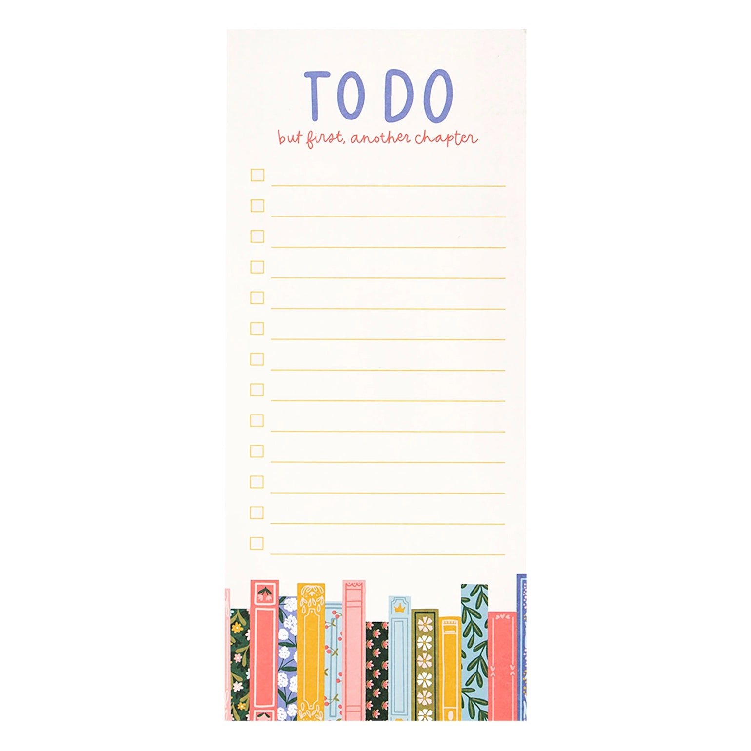 Stay organized in style with our But First, Another Chapter Books To-Do Notepad! Perfect for book lovers, this whimsical notepad features an enchanting design that celebrates your love for reading while helping you keep track of tasks and notes. Each page is filled with plenty of space for your to-do lists, reminders, and ideas, making it an ideal companion for planning your day or jotting down thoughts inspired by your latest read. Whether you’re using it at home, the office, or as a gift for a fellow book lover, this notepad is a charming way to combine productivity with your passion for books. • Size: 4x9" • Features: 52 sheets for your notes and lists