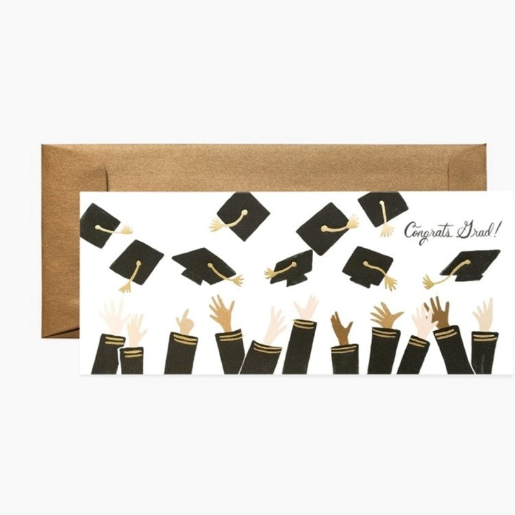 Send a congratulatory message with our extra-long greeting cards, which are perfectly sized for gifting cash or a check. A blank interior lets your handwritten note take center stage. DETAILS - 4.25" L 5.5" W, Natural white cover paper, Printed in full color and stamped, envelope, Blank interior, Made in USA.