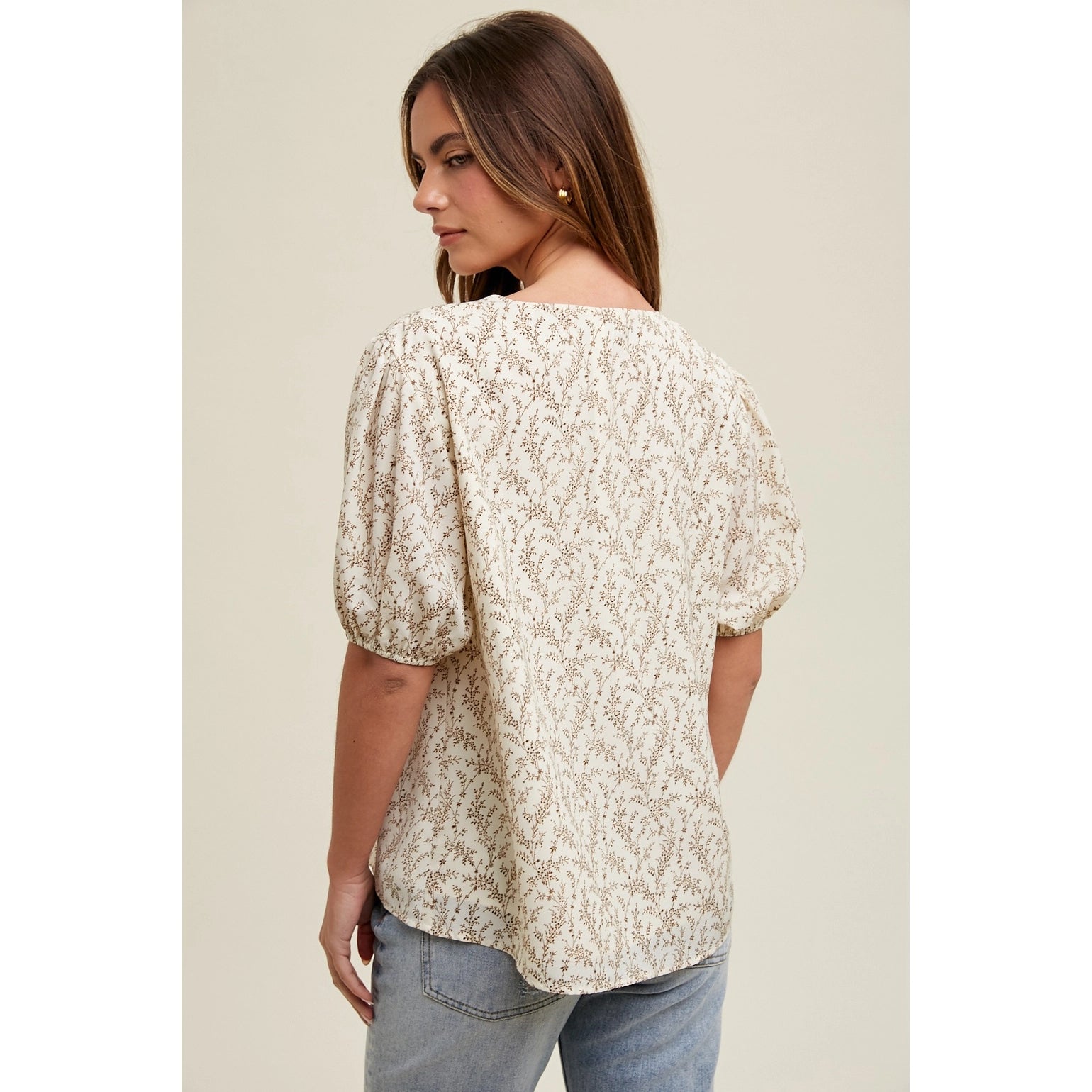 Elevate your wardrobe with our Floral Puff Sleeve Blouse. Adorned with delicate floral details, this blouse features functional buttons and is fully lined for ultimate comfort. Perfect for any occasion, it effortlessly combines fashion and function for a luxurious and sophisticated look.