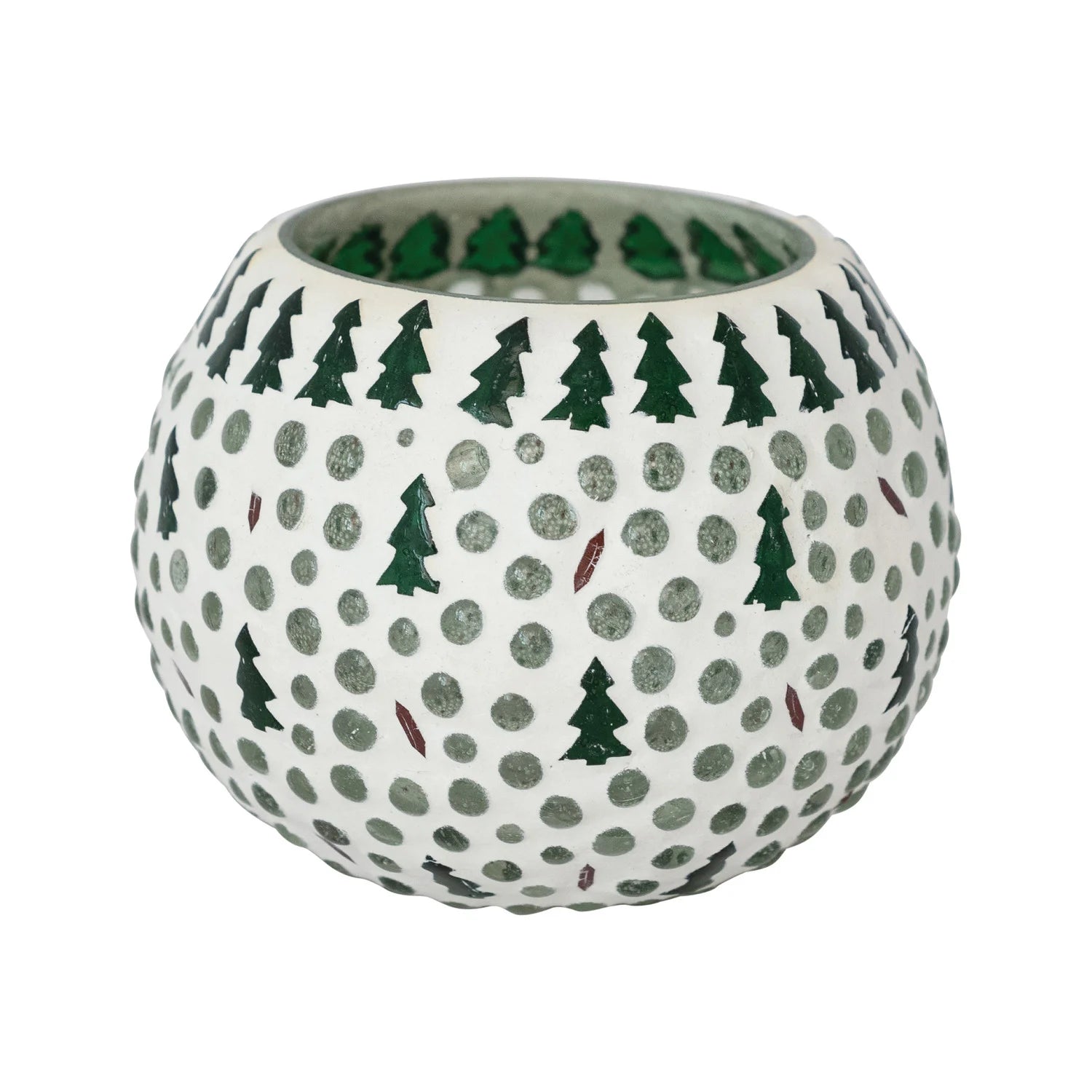 4-1/4" Round x 3-1/4"H Glass Mosaic Tealight/Votive Holder w/ Trees, Multi Color