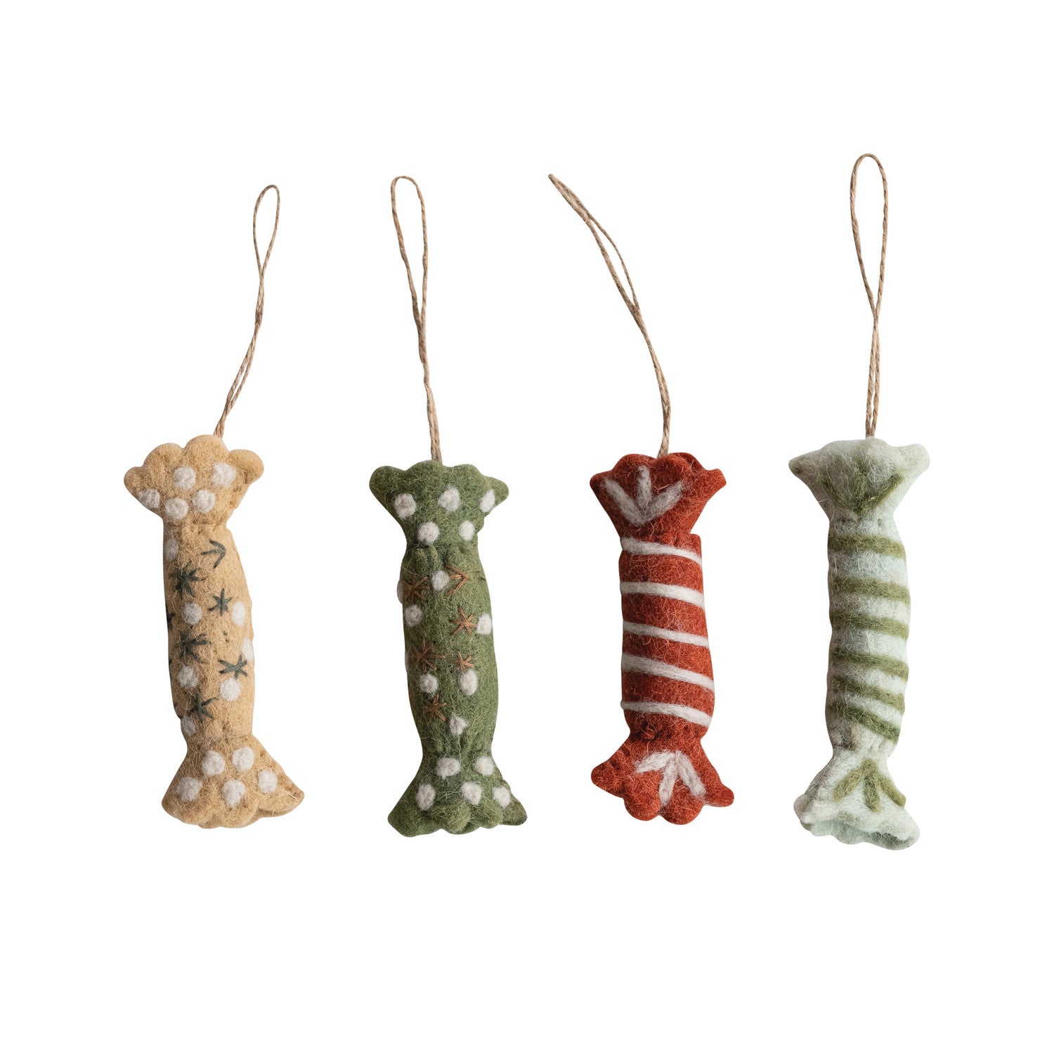 4"H Handmade Wool Felt Candy Ornament w/ Embroidery