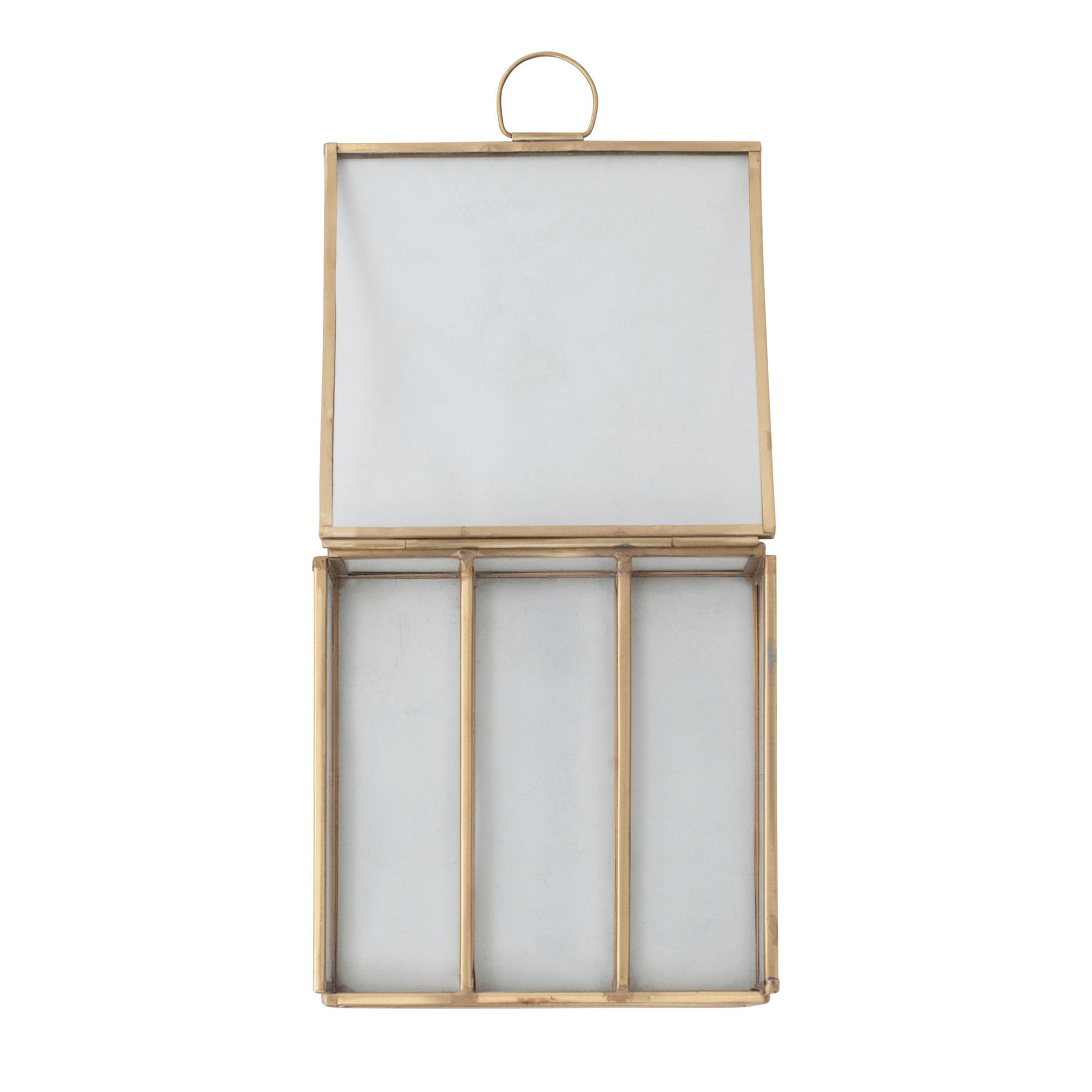 5" Square x 1 1/2"H Metal & Glass Box w/ 3 Compartments, Brass Finish