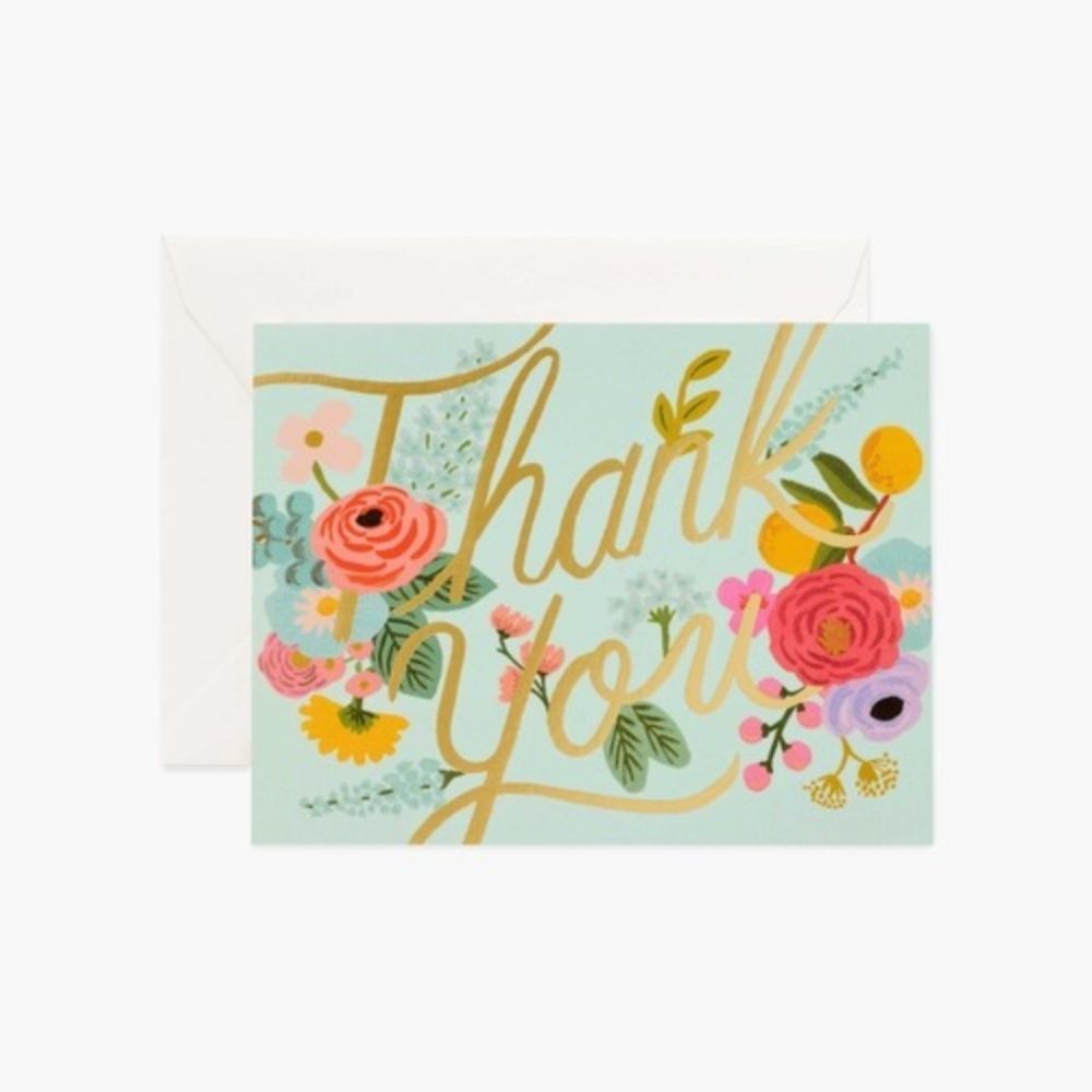 Our collection of thoughtful thank-you cards offer a beautiful way to show your appreciation. A blank interior lets your handwritten note take center stage. DETAILS - 4.25" L 5.5" W, Natural white cover paper, Printed in full color and stamped, envelope, Blank interior, Made in USA.