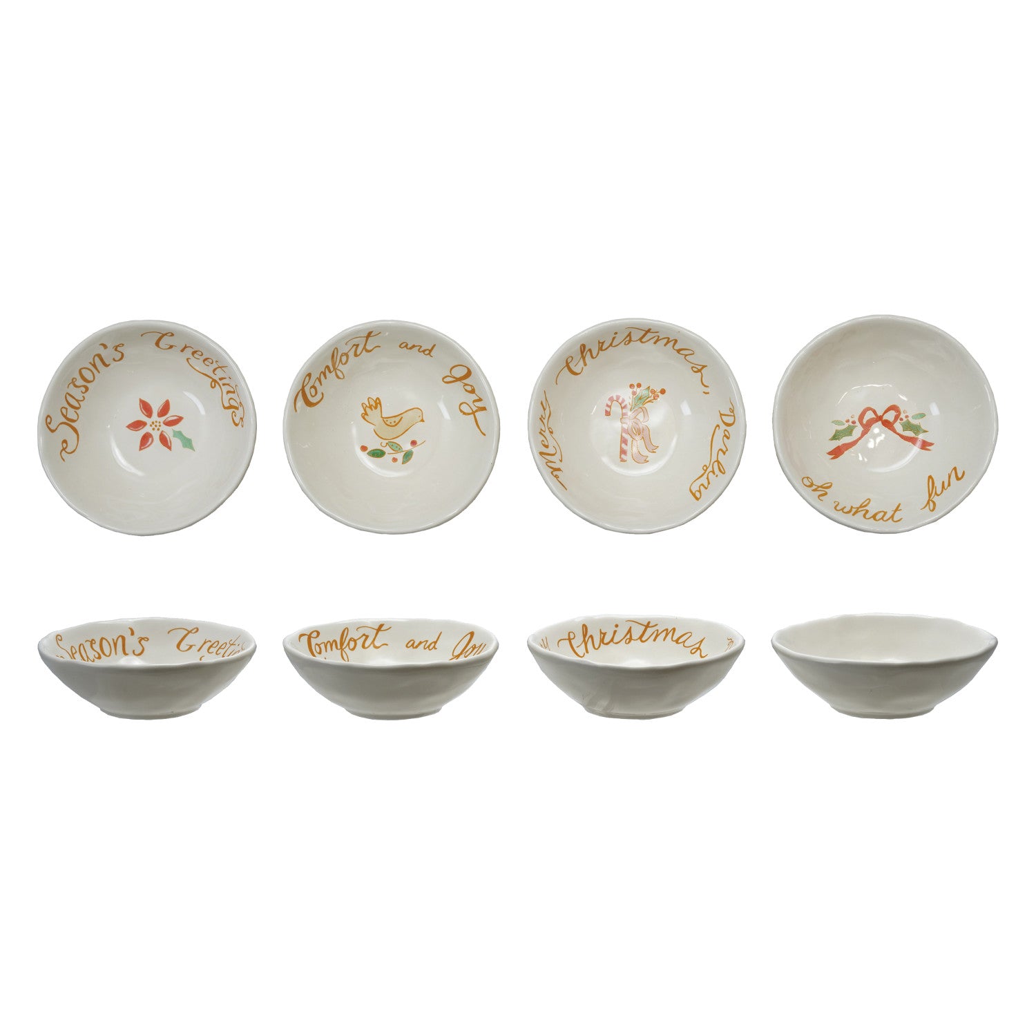 4" Round x 1-1/2"H Stoneware Bowl w/ Holiday Saying/Image