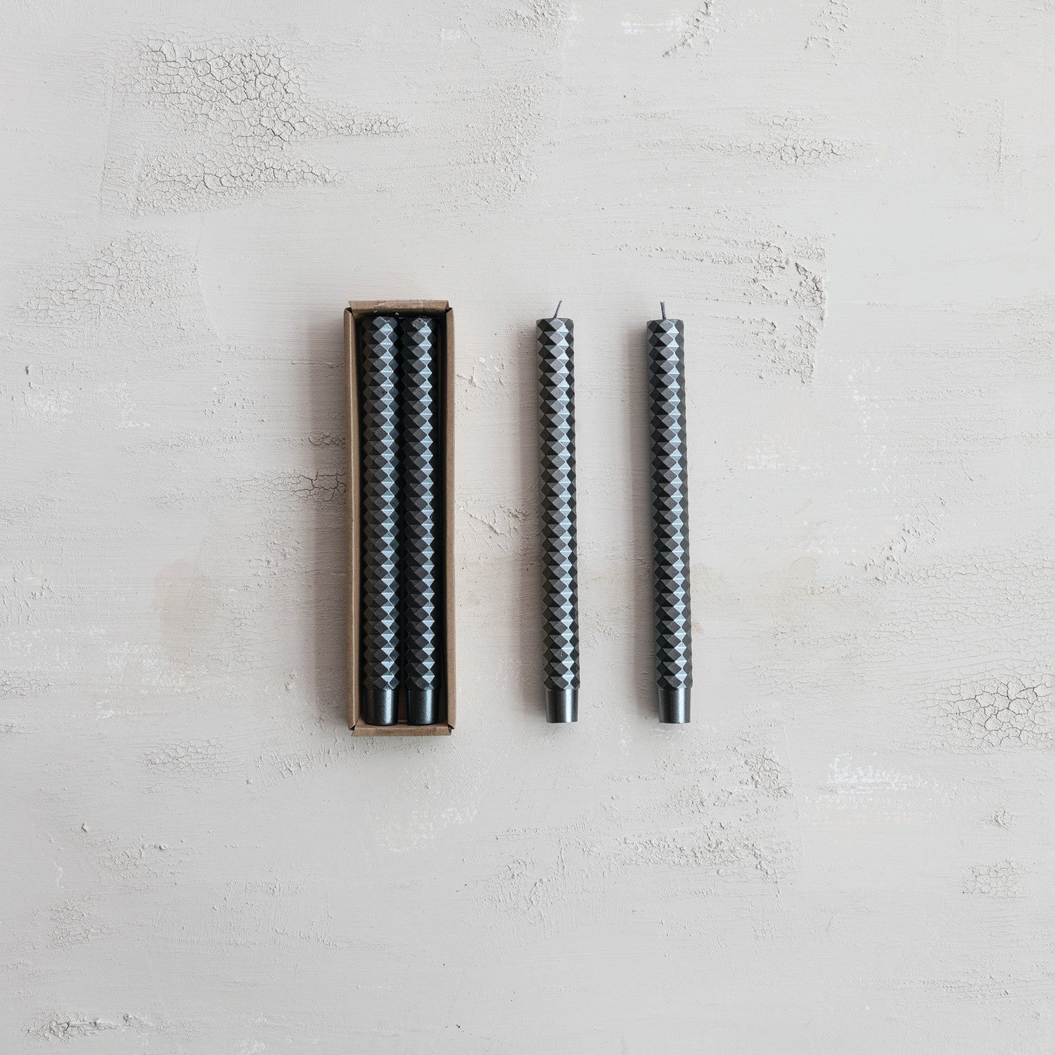 10"H Unscented Faceted Taper Candles in Box, Platinum Color, Set of 2