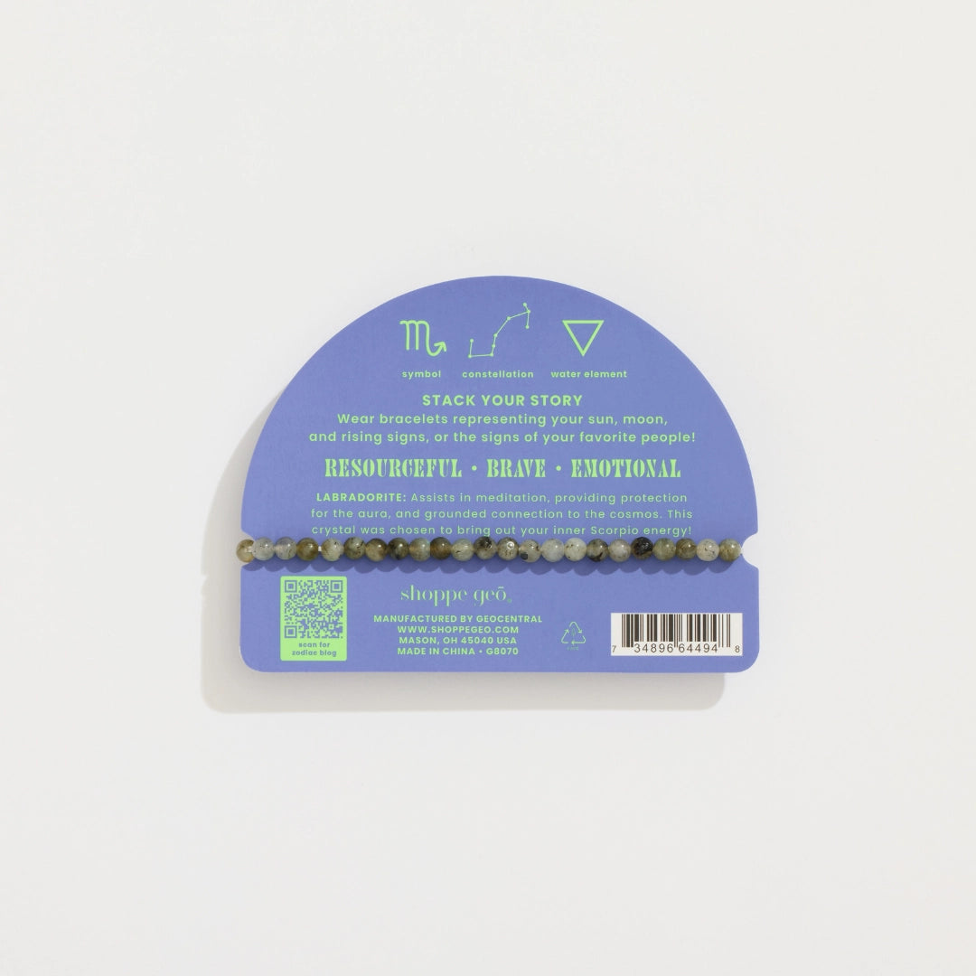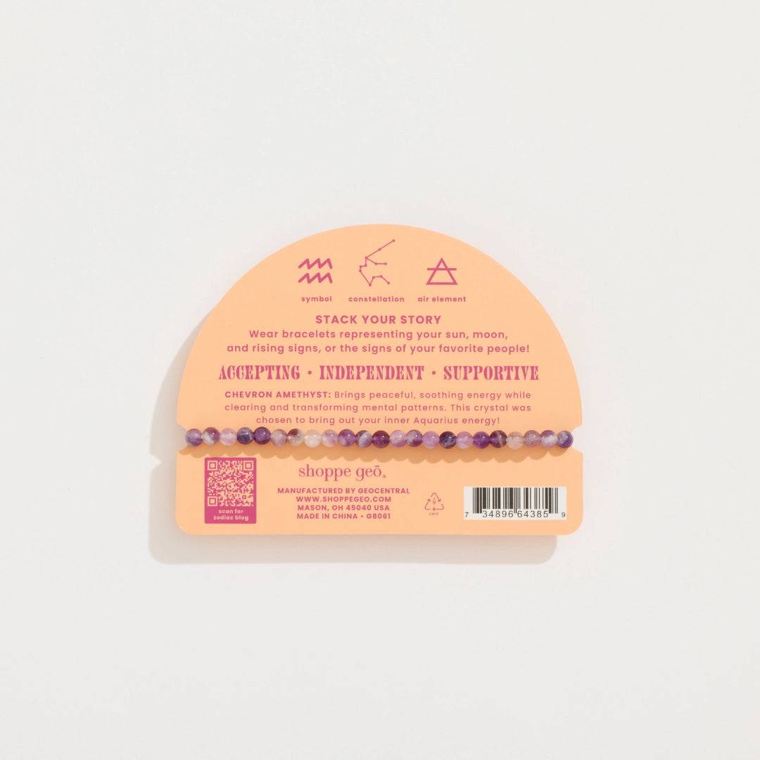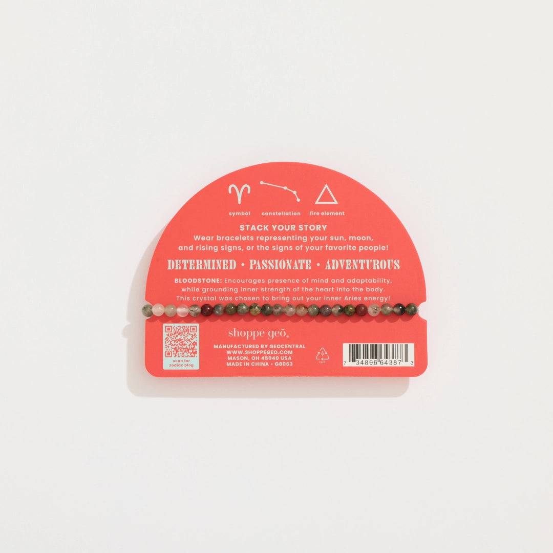 Metaphysical properties are described on the backer card, along with information about the zodiac sign.